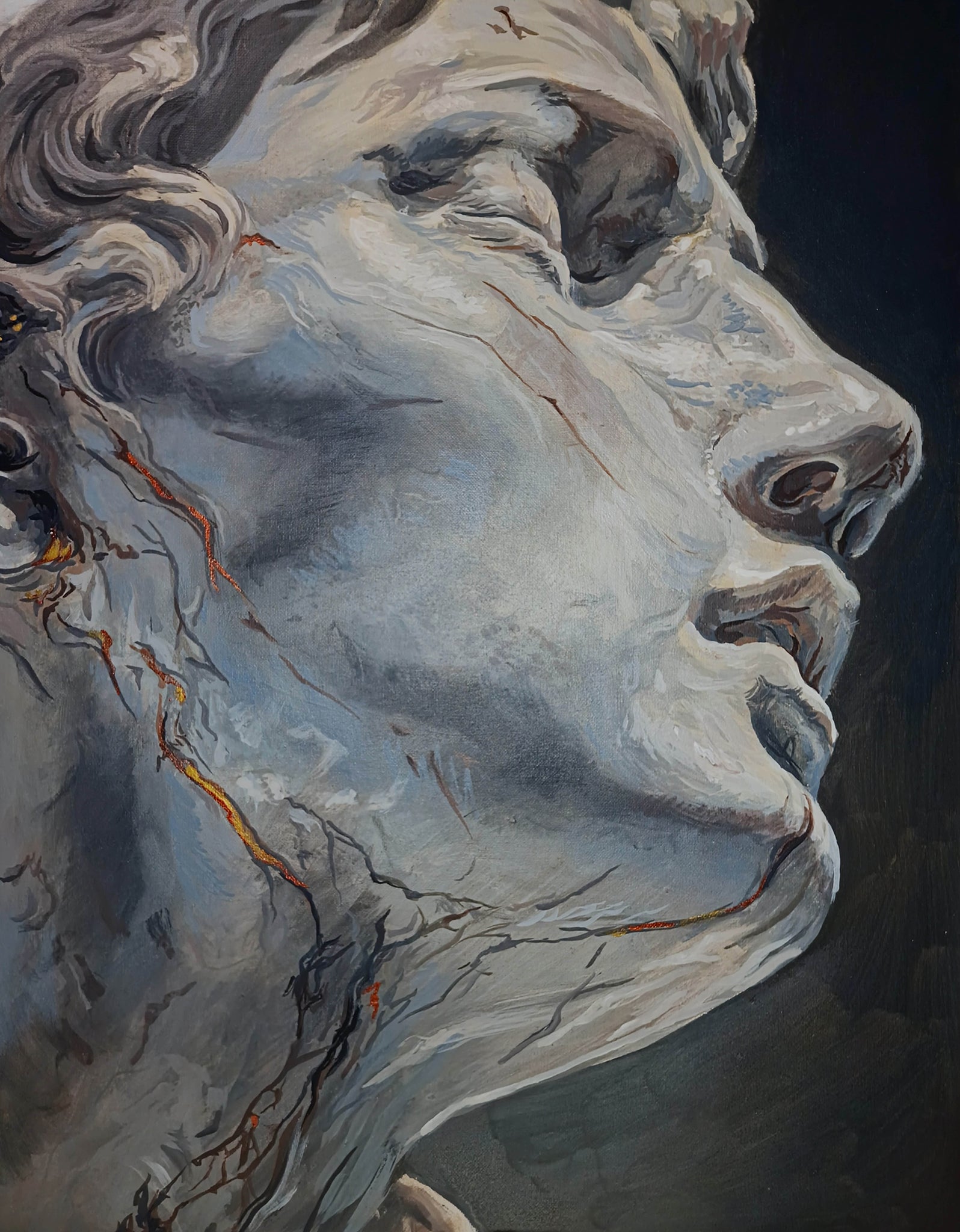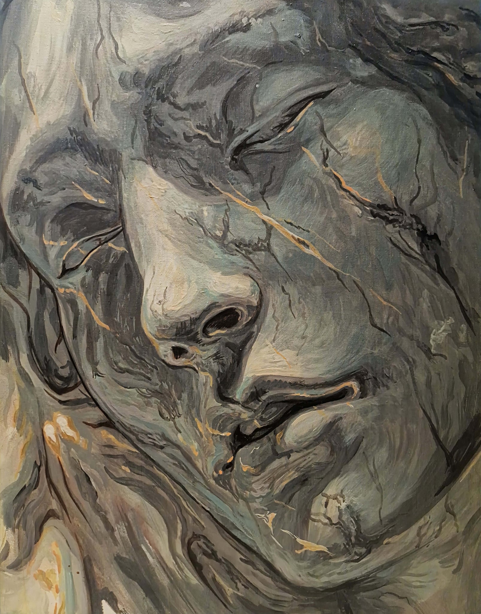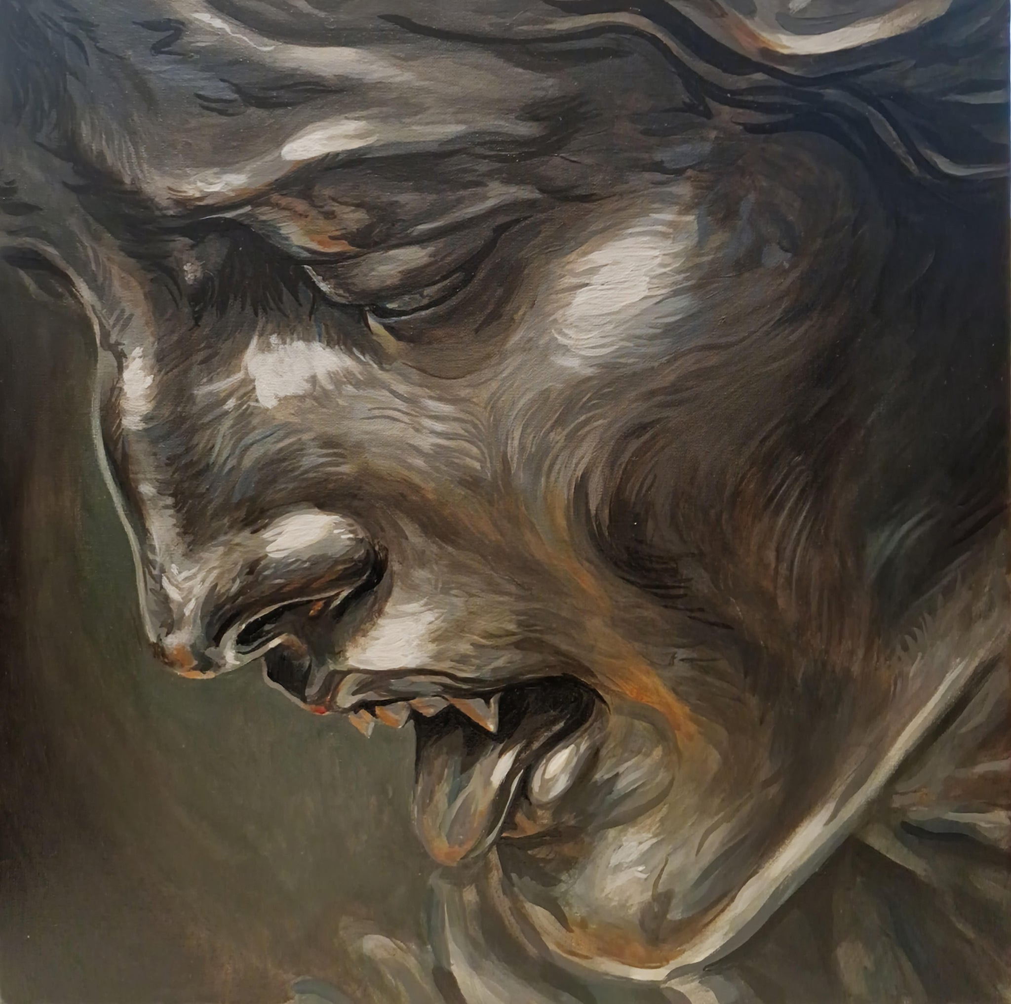 Acrylic on canvas 2019 178cm x 78cm/ 70” x 30.7” (The frame is no longer available) Unearthing the decadence, Thee whorely heathen humans, I rip out...