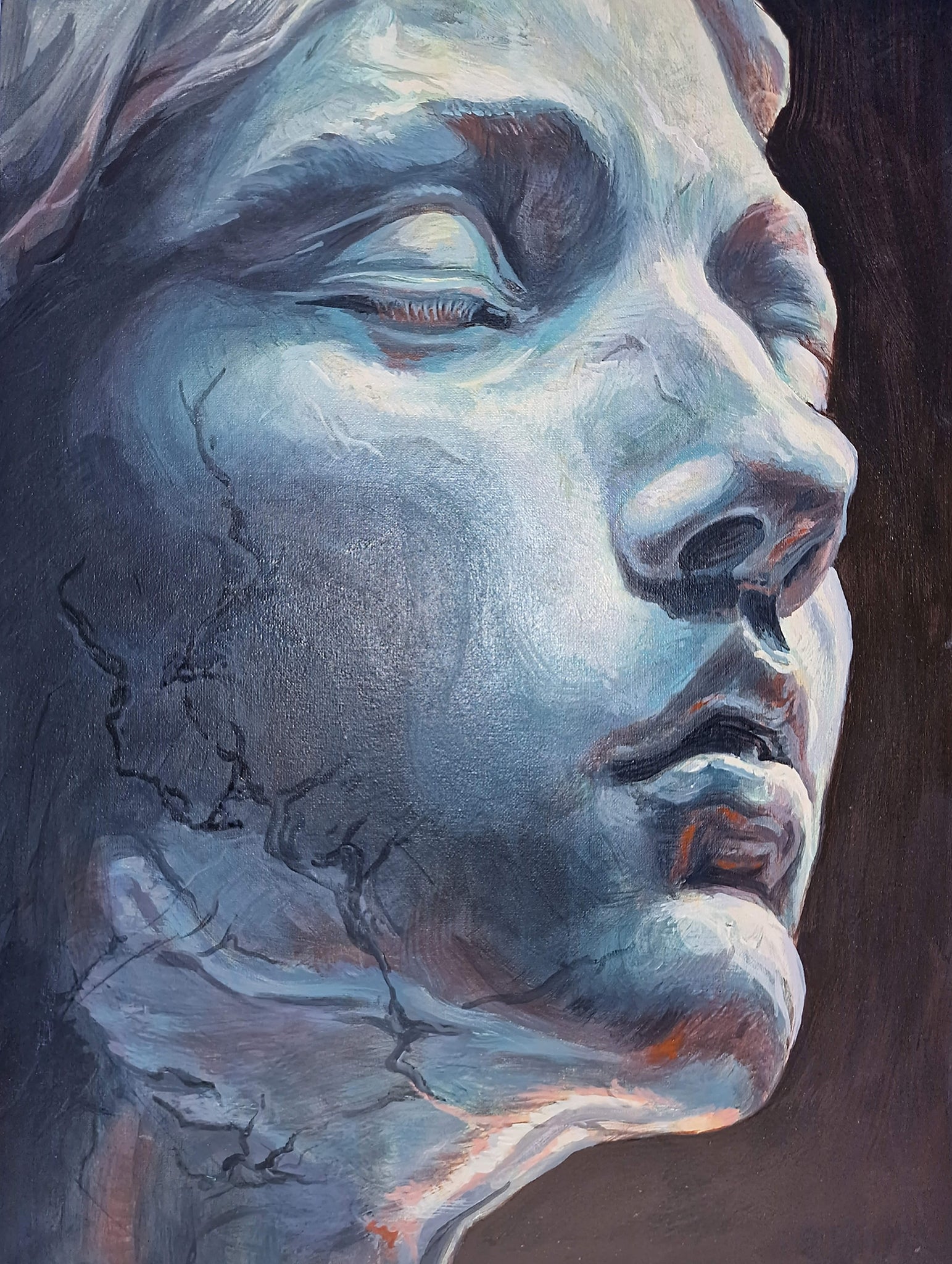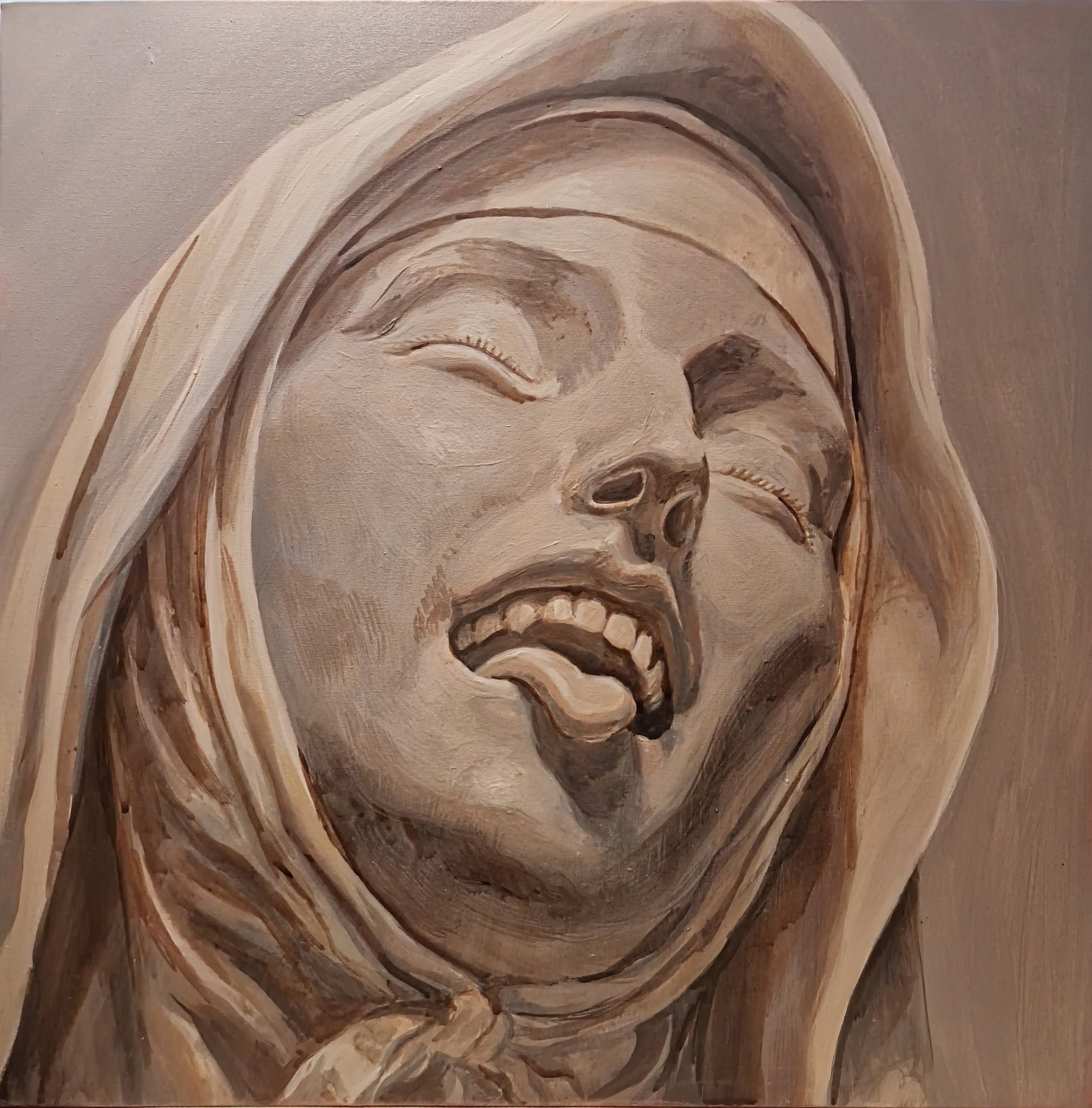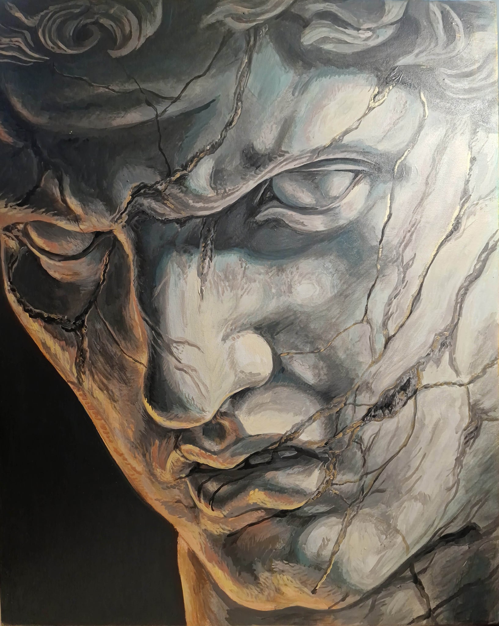 Acrylic on canvas 2019 178cm x 78cm/ 70” x 30.7” (The frame is no longer available) Unearthing the decadence, Thee whorely heathen humans, I rip out...