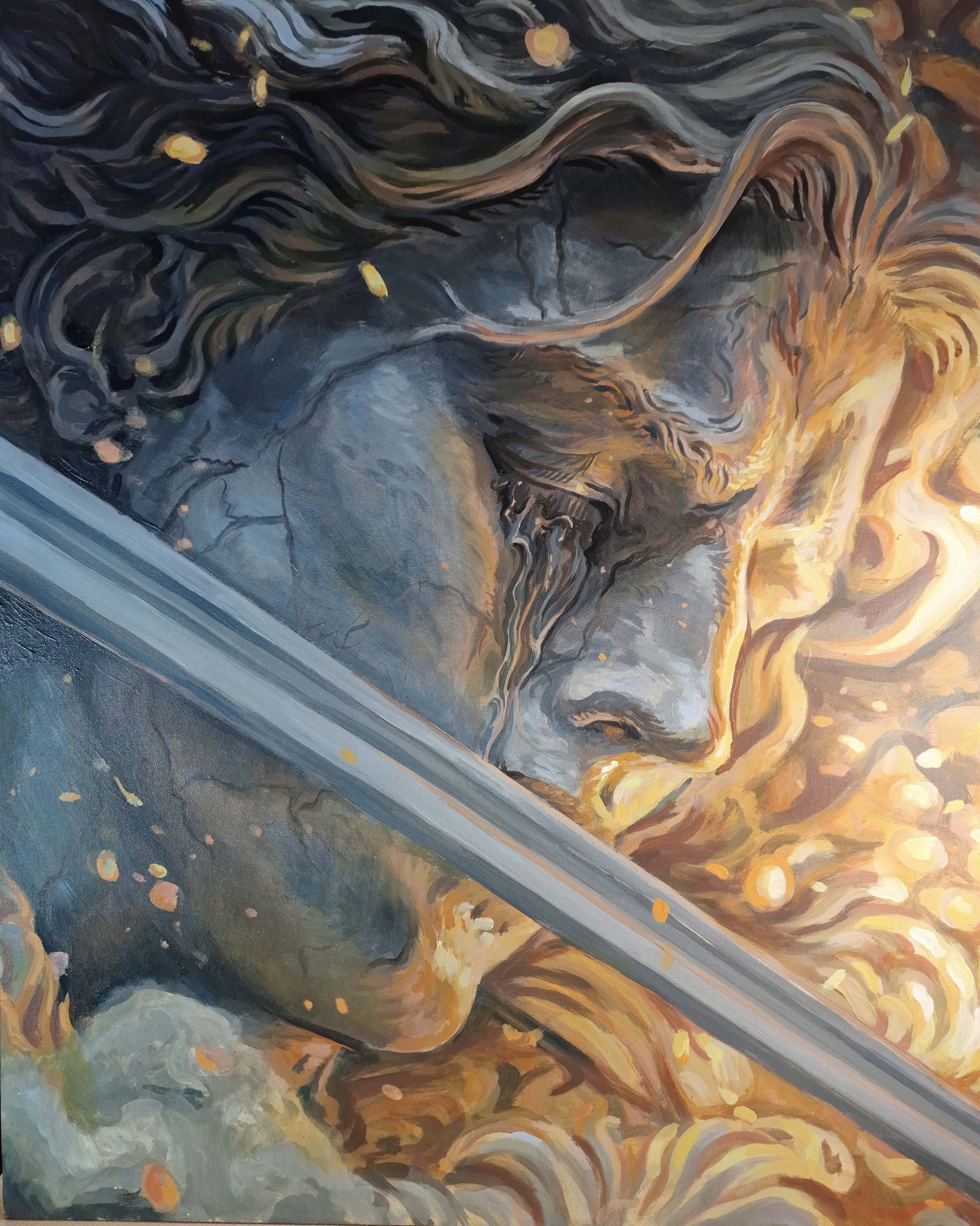 Oil on canvas, Golden acrylic border 20221450 x 1100mm A product on my meditations and inspiration from Finnish Mythology, which was songs sung for 1000's...
